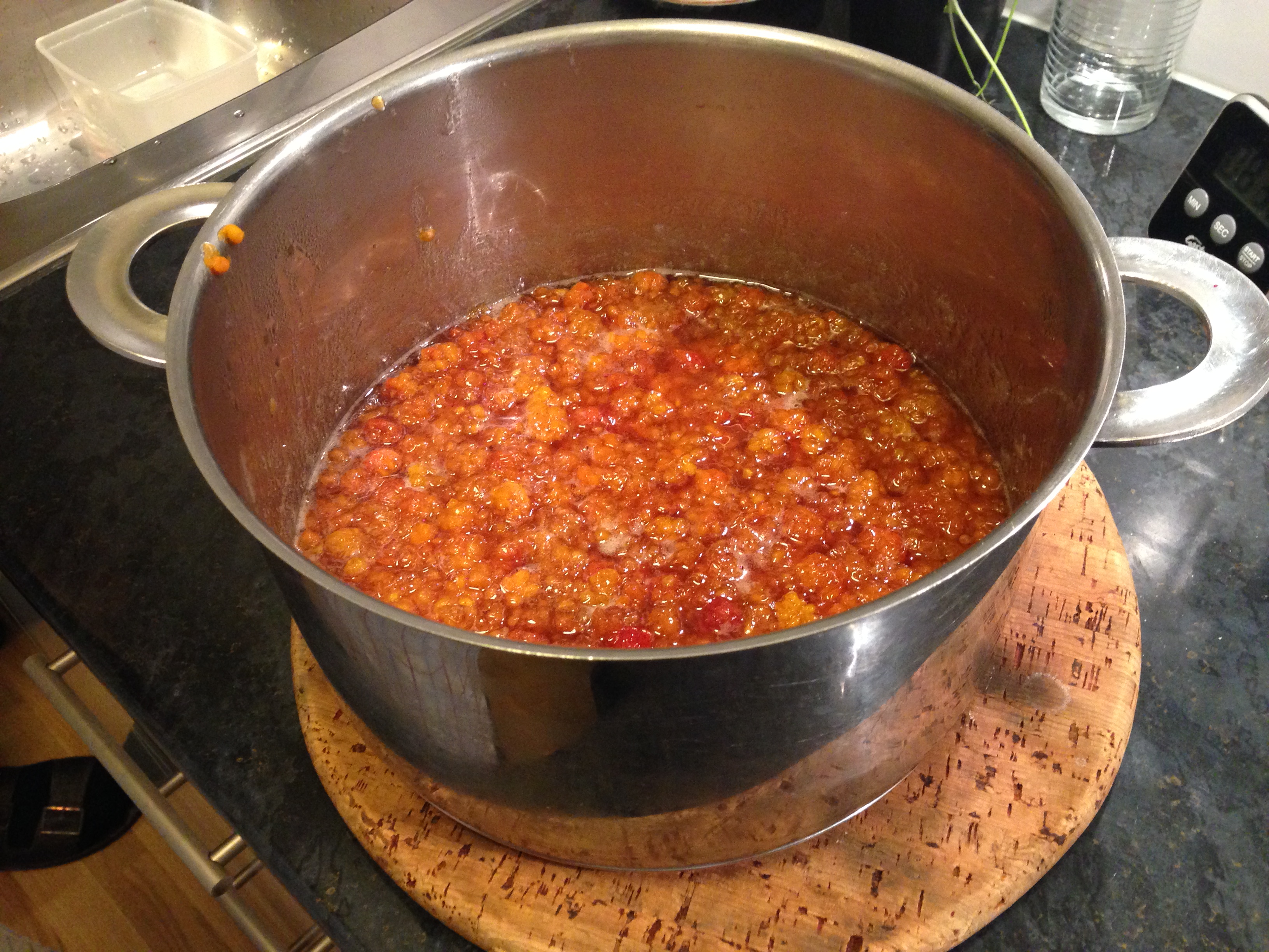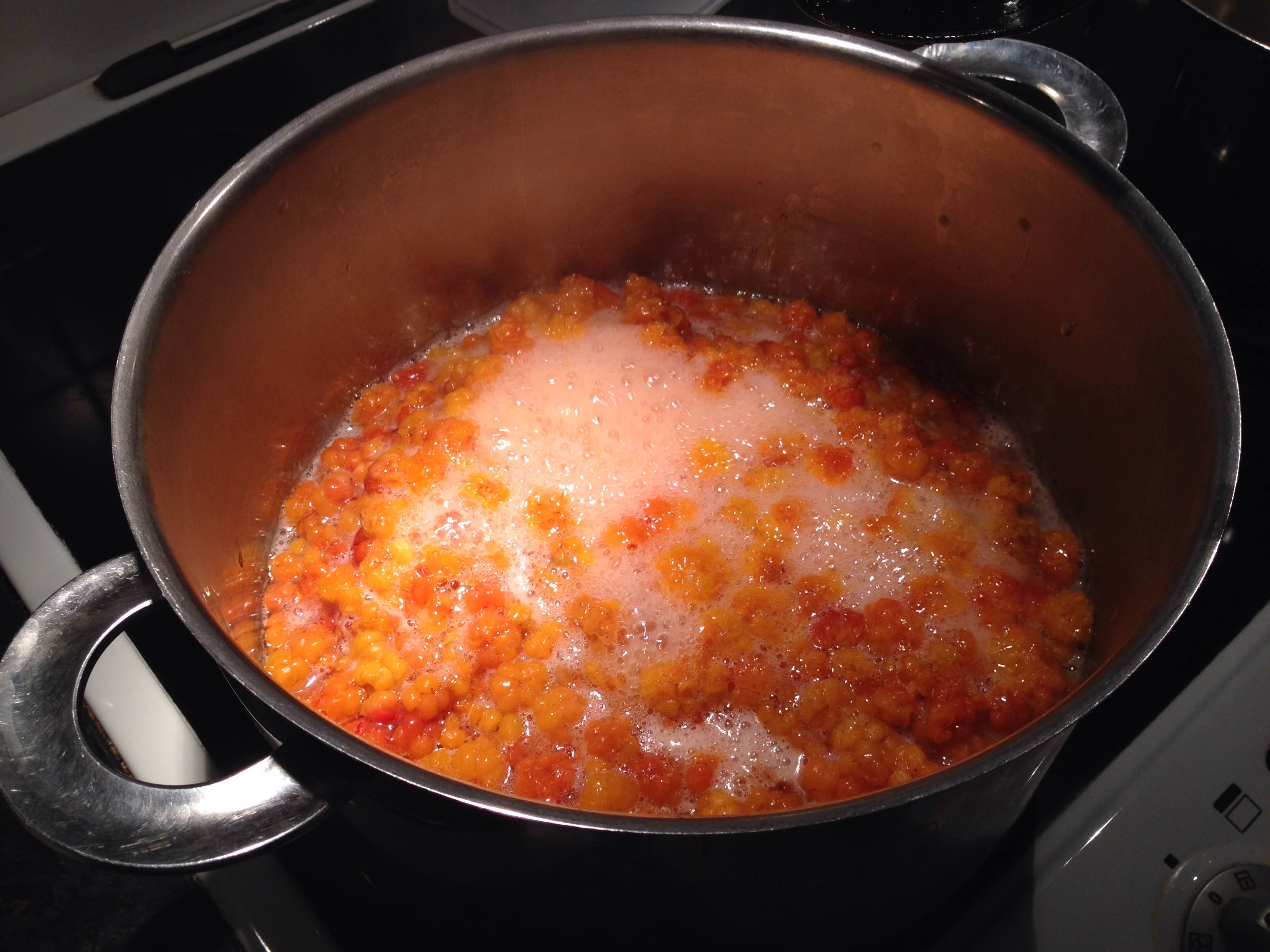 1. Varva bär med socker i en gryta.