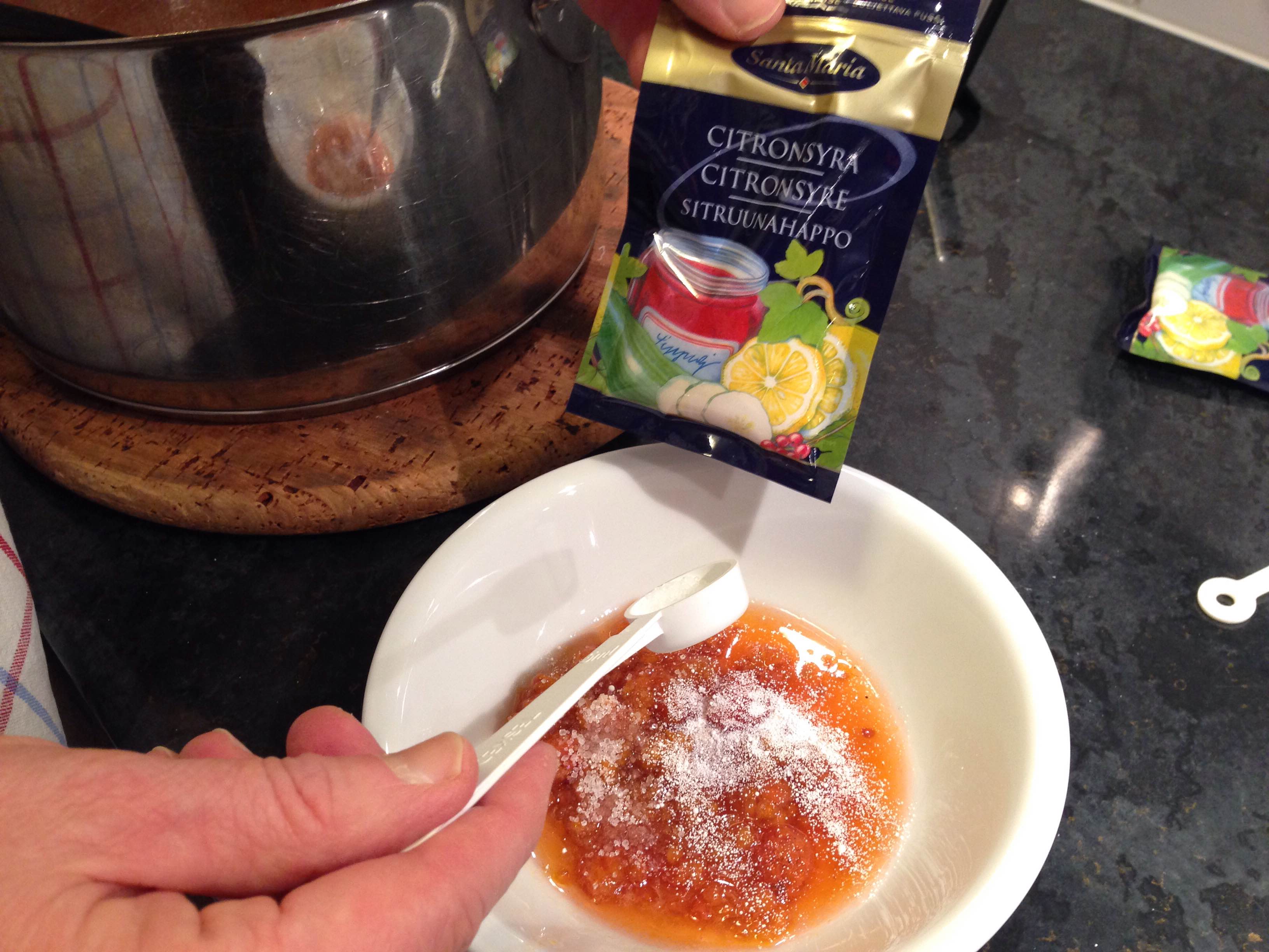 1/2 tsk citronsyra (har konserverande verkan och gör sylten fastare).