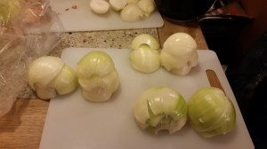 1: Skär lökarna på mitten och skala av de största halvorna (antal varierar av lökens storlek)