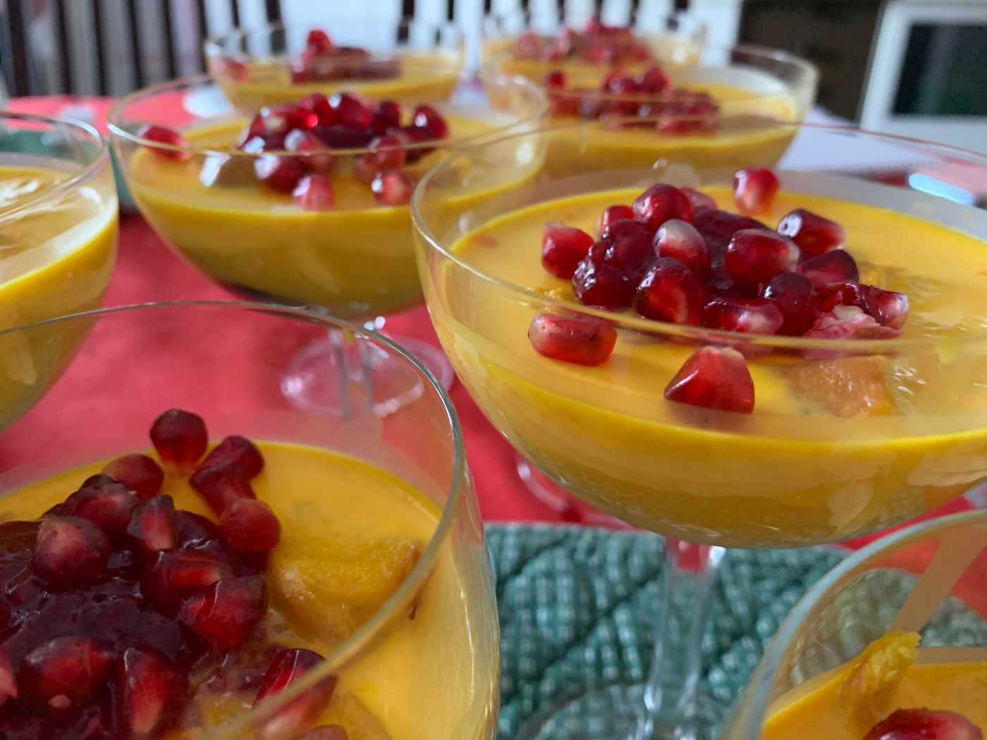 - Garnera med exempelvis granatäpple, passionsfrukt och sylt.
