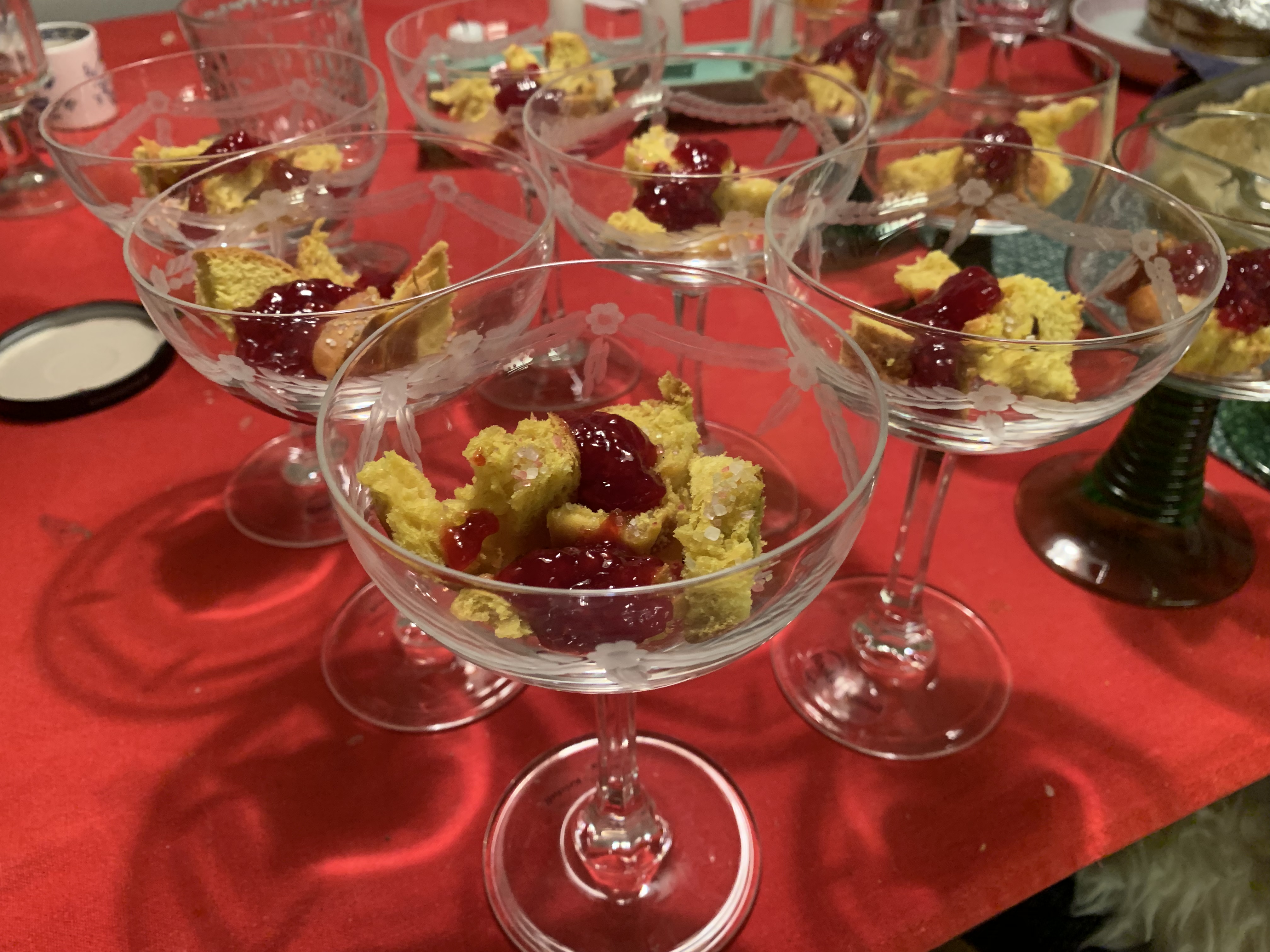 - Preppa glasen med strössel, saffransbrödet och sylt.