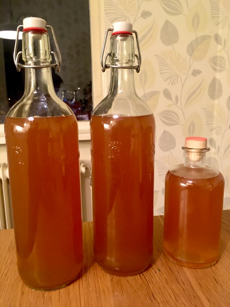 5. Häll över glöggen i urkokade flaskor med hjälp av en tratt. Skål och god jul!