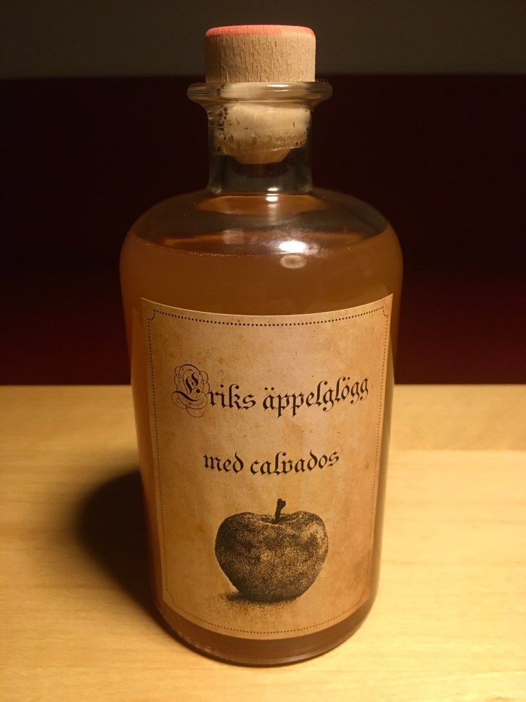 De senaste jularna har jag tagit för vana att svänga ihop min egen glögg. Det har blivit olika varianter rött vin med mörk rom, bourbon och cognac, men i år landade valet på första gången på vitt vin och calvados. Till skillnad från tidigare år tillsatte jag även 33cl äppelmust för att förtydliga äppligheten i glöggen. Kombinationen av kryddor till glöggen har lånat från den ypperliga hemsidan RomRom.
