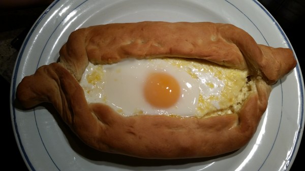 Om georgierna var de som upptäckt amerika skulle vi alla äta deras ostbröd snarare än pizza. Khachapuri är deras klassiska ostbröd som i denna variant även får ägg och lite fetaost i blandningen. Fantastiskt gott! Degen 500 g vetemjöl 1/2 tesked strösocker 1,2 dl ljummet vatten 1 paket torrjäst 1,2 dl mjölk 1 ägg 0,25... Fortsätt läsa →